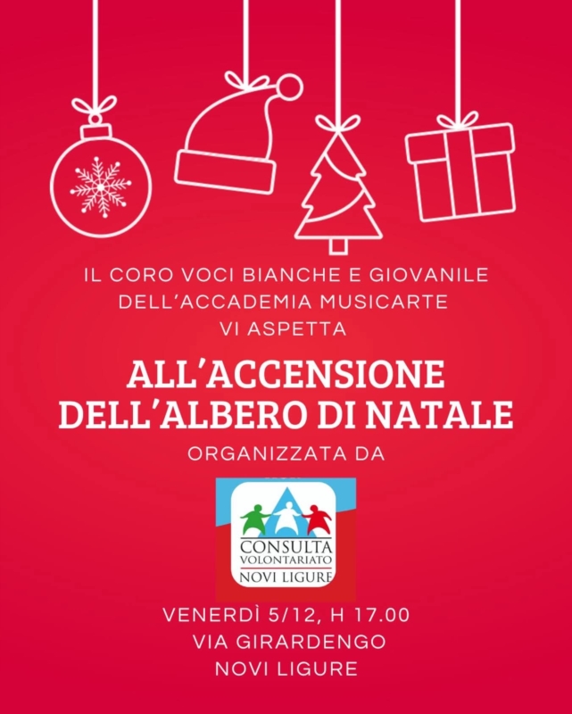 Alle 17 sarà acceso l'albero accompagnato dalla cioccolata calda degli alpini e dalle canzoni dell'accademia MusicArte.
