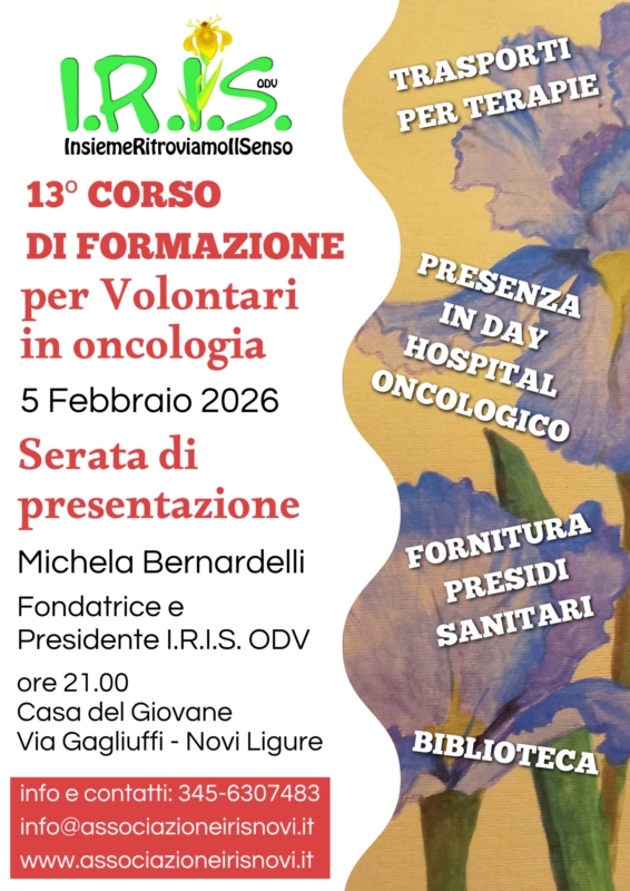 Per qualsiasi informazione potete scrivere a info@associazioneirisnovi.it o telefonare al n. 345/6307483.