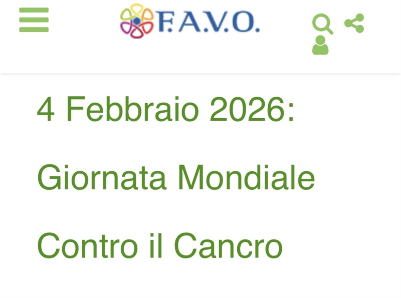 In occasione della Giornata Mondiale contro il Cancro che si svolgerà mercoledì 4 febbraio 2026, segnaliamo e invitiamo alla partecipazione dell'evento organizzato dalla FAVO Federazione Italiana delle Associazioni di Volontariato in Oncologia.